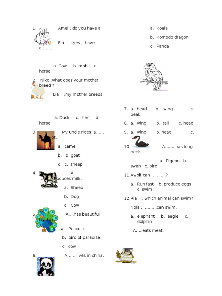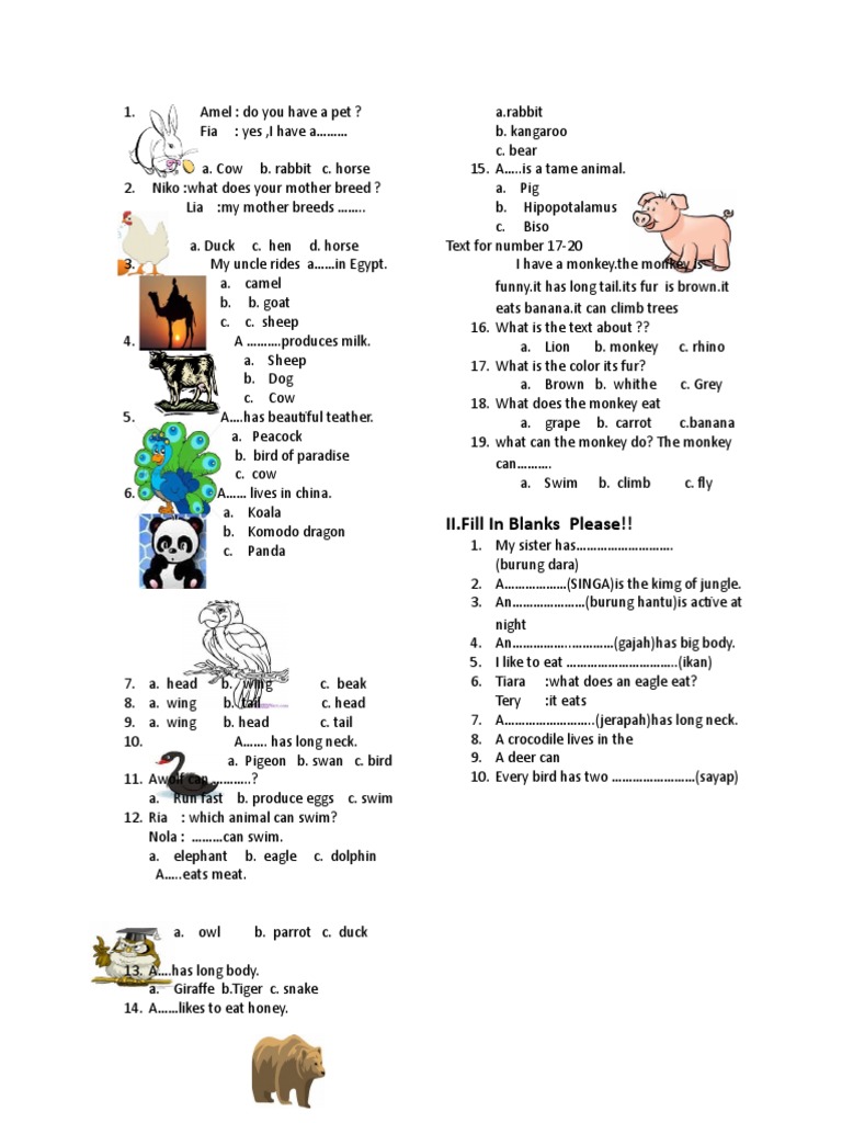 Chelsea is a talented actress. Tak hanya kelas 4, soal di bawah ini juga bisa dijadikan sebagai soal bahasa inggris kelas 2 tentang animal. He bought me a robot when he sailed abroad. Descriptive text owl owl elephant lihat juga soal tentang pilihan, dan contoh soal pilihan ganda descriptive text animal. Soal bahasa inggris kelas vii a (animal and things) draft.